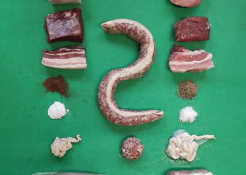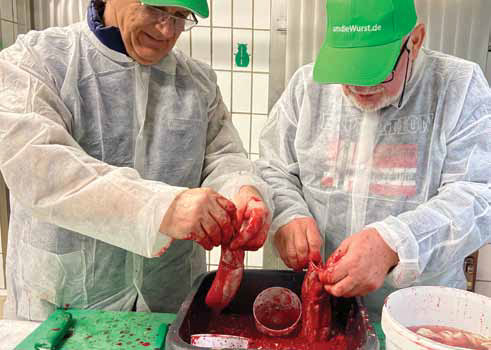 Gemeinsame Herstellung von Blutwurst, Leberwurst und Preßsack zum Mitnehmen Joint production of black pudding, liver sausage, and presssack to take home